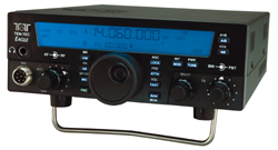 • Ten-Tec 599 Eagle - orzeł Ten-Teca Ten-Tec, amerykański producent wyczynowych radiostacji, wprowadza na rynek nowy transciever: Ten-Tec 599 Eagle, wypełniając we ten sposób lukę na rynku po nieprodukowanym już modelu 516 Argonaut. Radiostacja ma bardzo nowoczesną konstrukcję, 100 W nadajnik ze skrzynką antenową i może pracować we wszystkich pasmach KF. Nadajnik zawiera zintegrowany automatyczny tuner antenowy L pracujący w zakresie SWR 10 : 1 (w pasmach HF bez 6 m). Odbiornik może pracować w zakresie częstotliwości 100 kHz – 30 MHz oraz 48 – 54 MHz, z podstawowymi emisjami CW i SSB. Opcjonalne moduły zapewnią emisje AM i FM. Na stałe jest zabudowany wzorcowy generator o dokładności ±0,5 ppm. Układ odbiornika pracuje jako superheterodyna z potrójną przemianą częstotliwości (1 IF: 2,4 kHz; 2 IF: 22,5 kHz; 3 IF: będzie sterowana przez DSP, w którym zdefiniowano 127 filtrów z zakresu 100 Hz–15 kHz). Istnieje możliwość zmiany 1 pośredniej na 9,0015 MHz. W urządzeniu istnieje możliwość instalacji opcjonalnych roofing filtrów oraz dodatkowy układ NB (Noise Blanker). Radiostację wyposażono w złącze USB do komunikacji z komputerem. Konstruktorzy przewidzieli także możliwość zmiany firmware'u oraz zmiany koloru podświetlenia wyświetlacza w 256 różnych kolorach z 16 poziomami regulacji. Podstawowe parametry: - zakres pracy nadajnika: 10 – 160 m + WARC/6 m - zakres pracy odbiornika: 100 kHz – 30 MHz oraz 48 – 54 MHz - krok częstotliwości: 1, 10, 100, 1000, 10 000 Hz - czułość: AM: 0,5 uV (10 dB SINAD); FM: 2,2 uV (10 dB SINAD) - parametry dynamiczne odbiornika: IP3: 21,5 dBm/20 kHz; IMD3: 100 dB/kHz - zasilanie 13,8 VDC ±15% www.tentec.com