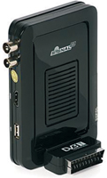 • Signal HD PVR A99250 - odbiornik i rejestrator telewizji cyfrowej DVB-T Odbiornik naziemnej telewizji cyfrowej Signal HD-507 A99250 jest jedynym tego typu odbiornikiem dostępnym na rynku, który w małej, praktycznej obudowie mieści wielofunkcyjne urządzenie. Jest też jednym z najtańszych rozwiązań pozwalających użytkownikom starszych telewizorów kineskopowych oraz telewizorów LCD i plazmowych wyposażonych w głowicę naziemnej telewizji cyfrowej MPEG-2 na wkroczenie w nowy świat telewizji cyfrowej. Posiadacze telewizorów przystosowanych w pełni do odbioru telewizji cyfrowej w kompresji MPEG-4 również mogą się zainteresować odbiornikiem ze względu na zintegrowany odtwarzacz multimediów oraz funkcję Personal Video Recorder (PVR Ready). Signal HD-507 odtwarza zdjęcia, muzykę oraz filmy – również te w wysokiej rozdzielczości. Działa też jako rejestrator programów DVB-T. Największa zaletą odbiornika A99250 są jego kompaktowe wymiary. Urządzenie wpięte bezpośrednio w wejście SCART telewizora pozostaje praktycznie niewidoczne dla użytkownika. Odbiornik nadaje się idealnie do telewizorów LCD/plazma wiszących na ścianach – w zależności od modelu TV oraz uchwytu możliwe jest takie ułożenie urządzenia, aby mieściło się między telewizorem a ścianą bądź uchwytem. Schowany za telewizorem tuner odbiera sygnały sterujące z pilota czujnikiem podczerwieni umieszczonym na krótkim kabelku. Aby urządzenie pracowało poprawnie, czujnik podczerwieni należy przyczepić na frontowym panelu telewizora. Tuner współpracuje z wykorzystywanym w Polsce standardem kompresji MPEG-4 oraz wcześniejszą jego wersją MPEG-2 używaną w niektórych krajach europejskich. Urządzenie zapewnia doskonałą jakość obrazu zarówno w rozdzielczości SD, jak i HD. Port USB umożliwia nagrywanie materiałów wideo (PVR) na zewnętrznych nośnikach danych, takich jak dyski twarde HDD lub pamięci flash (pendrive). Korzystając ze złącza HDMI, dostarczamy do telewizora sygnał jakości HD. Tuner może być wówczas wpięty do gniazda SCART bądź nie. Przy jednoczesnym wykorzystaniu obu rodzajów złączy priorytet ma wyjście HDMI. Odbiornik jest w pełni zgodny z założeniami standardu DVB-T (standard ETSI ETS300744) i umożliwia odbiór kanałów FTA (Free-To-Air) w rozdzielczości SD oraz HD (wyjście HDMI) kompresowanych w standardzie MPEG-2 oraz MPEG-4. Zawiera funkcjonalny oraz przejrzysty przewodnik programowy (EPG – Electronic Program Guide) zawierający szczegółowe dane dotyczące oferty programowej na dany dzień oraz tydzień (w zależności od poziomu tej usługi od strony nadawcy). Poruszanie się po menu odbiornika nie powinno stanowić problemu nawet dla osób nieposiadających doświadczenia w użytkowaniu tego typu urządzeń. www.avantiradio.pl