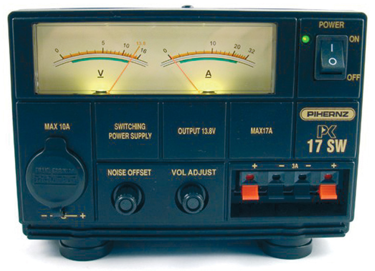 • Pihernz 17 SW (35 SW, 55 SW) - dopracowane zasilacze impulsowe 13,8 V Na krajowym rynku pojawiły się nowe zasilacze impulsowe hiszpańskiej firmy Pihernz. Są to urządzenia impulsowe o niezwykle dużej wydajności, produkty polecane dla najbardziej znanych przedstawicieli w branży radiokomunikacji. Aby praca na pasmach radiowych przebiegała bezproblemowo, zasilacze wyposażono w funkcję przesunięcia prążków (Noise Offset). Dzięki temu seria SW wybija się ponad inne zasilacze impulsowe, które poprzez wewnętrzne zakłócenia uniemożliwiają komfortowe nawiązywanie łączności. Oferowane urządzenia mają zabezpieczenia termiczne, przeciwprądowe i przeciwprzepięciowe z ostrzegawczą diodą LED. Cicha praca zasilaczy jest efektem odprowadzania ciepła do wydajnych radiatorów oraz dzięki wydajnym, ale jednocześnie cichym wentylatorom. Seria SW ma regulację napięcia w zakresie od 8 V do 15 V oraz różne maksymalne prądy obciążenia (zależne od modelu: 17, 35, 55 A). Na obudowach znajdują się przydatne szybkozłącza (maksymalnie 3 A) i gniazdo zapalniczki (maksymalnie 10 A). Podstawowe parametry zasilaczy: - napięcie zasilania: 220–240 V AC (bezpiecznik 4 A) - napięcie wyjściowe: 8–15 V DC regulowane - pobór prądu: PC-17 SW: 15 A ciągły, 17 A max; PC-35 SW: 30 A ciągły, 35 A max; PC-55 SW: 50 A ciągły, 55 A max - wymiary (identyczne dla wszystkich 3 modeli): 170×300×125 mm - waga: PC-17 SW: 1,8 kg; PC-35 SW: 2 kg; PC-55 SW: 2,8 kg www.sonar.biz.pl