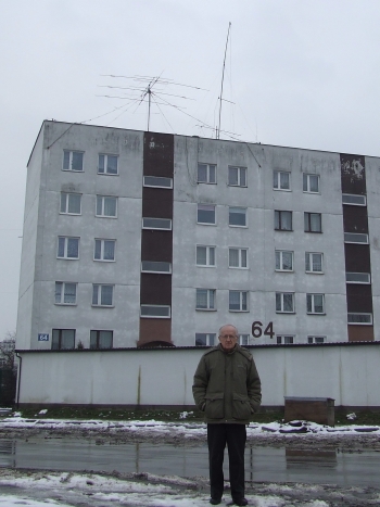 Na zdjęciu: Tadeusz Raczek SP7HT na tle swoich anten.