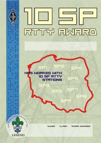 Należy wykazać przeprowadzenie 10 QSO RTTY z wszystkimi 9 okręgami SP.