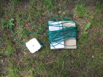 Miałem okazję zobaczyć rozwieszanie na sosnach dipola na 80m oraz pomiar charakterystyki za pomocą analizatora antenowego przywiezionego przez Jarka SP3SWJ.