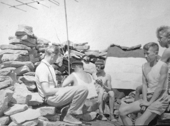 "...Poranek jest słoneczny i ani śladu wczorajszej burzy. Z godzinnym opóźnieniem przychodzą harcerze z XII drużyny żywieckiej, spotkani już w dniu wczorajszym i pomagają mam w transporcie. Wreszcie szczyt. Kładziemy bagaże. Pod nami przesuwają się mleczne obłoki chmur. Widoczność jest bardzo słaba. Przed rozpoczęciem montażu krótki odpoczynek i narada. Zajmujemy wreszcie miejsce obwarowane z trzech stron skałami, rezygnując z 30 metrowej wieży triangulacyjnej z uwagi na bardzo silny wiatr i małą ilość miejsca ..."