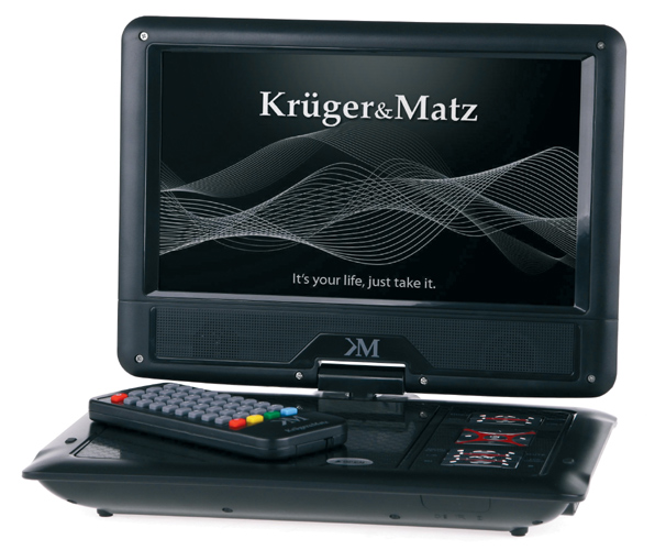 Marka Krüger&Matz oferuje przenośne urządzenie KM0001, którego funkcje sprawiają, że jest to produkt idealny na długie godziny podróży. Oprócz możliwości odtwarzania wielu rodzajów plików z DVD, CD, pamięci USB i kart SD i MMC, urządzenie ma wbudowany tuner do odbioru naziemnej telewizji cyfrowej DVB-T. Przenośny odtwarzacz DVD Krüger&Matz jest wyposażony w kolorowy, 9 calowy wyświetlacz LCD o rozdzielczości 800×480 pikseli. Dzięki niemu oglądanie filmów, czy ulubionych programów telewizyjnych będzie doskonałą rozrywką w niezachwianej jakości. Dzięki przenośnemu DVD Krüger&Matz KM0001 zachowamy także kontakt ze światem. A to dlatego, że urządzenie wyposażone jest w tuner do odbioru naziemnej telewizji cyfrowej w standardzie MPEG4. Dzięki dołączonej antenie odbiór telewizji cyfrowej będzie możliwy zarówno podczas wyjazdów, jak też w domu po podłączeniu urządzenia do telewizora. Do zestawu dołączona jest także przejściówka gniazda antenowego, dzięki której do KM0001 można podłączyć dowolną antenę o lepszych parametrach, aby cieszyć się telewizją w cyfrowej jakości nawet w najdalszych zakątkach naszego kraju. Wbudowany akumulator pozwala na korzystanie z urządzenia przez 2 godziny. Jednak dzięki dołączonemu do zestawu zasilaczowi samochodowemu sprzęt można ładować w trakcie jazdy, bez konieczności przerywania odtwarzanego programu. Urządzenie potrafi odtwarzać wiele rodzajów popularnych formatów np. DVD, MPEG-4, DVIX, CD, HDCD, CD-R, CD-RW Picture CD zapisanych na nośnikach DVD, CD, pamięciach USB oraz kartach SD i MMC. Do produktu dołączony jest pilot zdalnego sterowania.